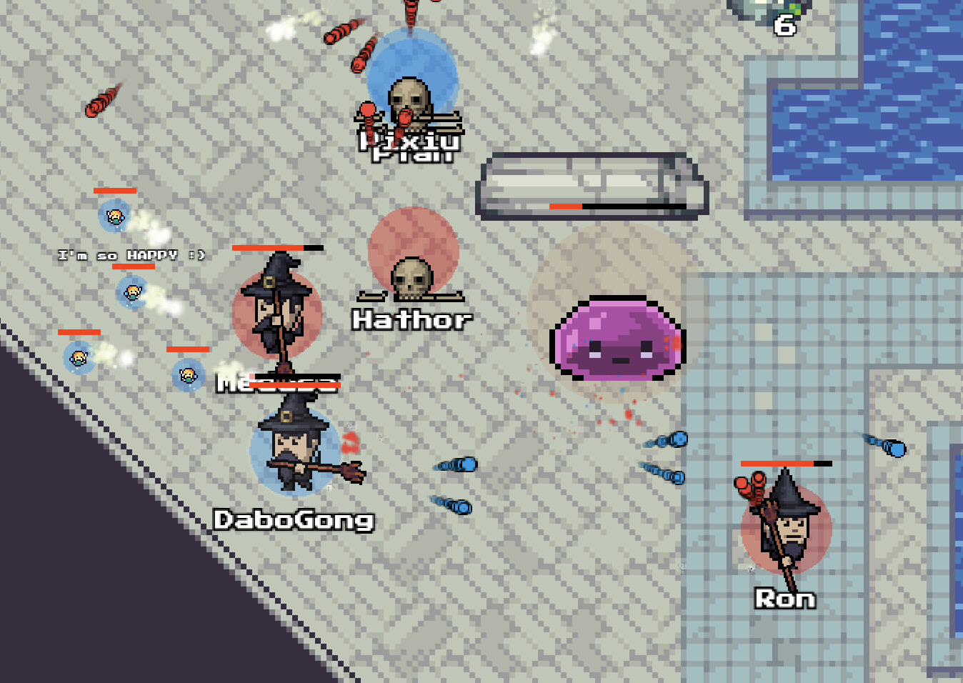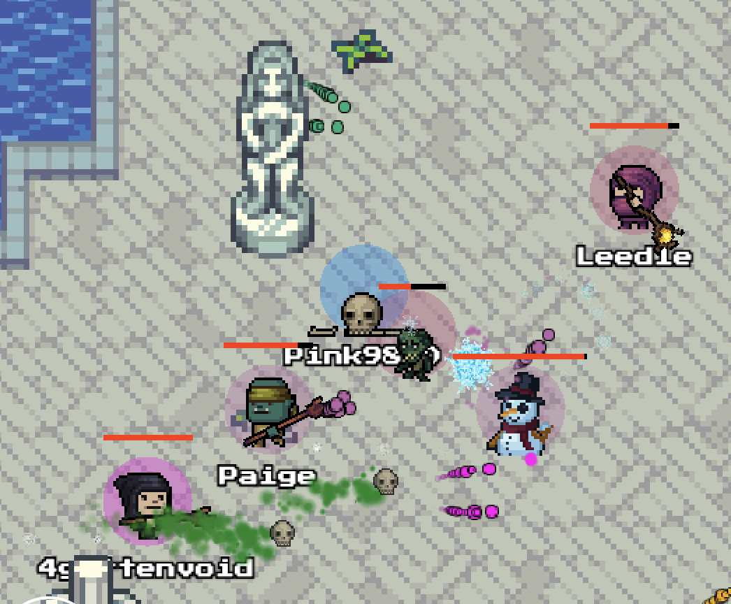 Taking down small slimes give you 2 points, but taking down the mega slime nets your team 10 points! All players are told where the mega slime is, so when the mega slime spawns it's sure to be chaotic!